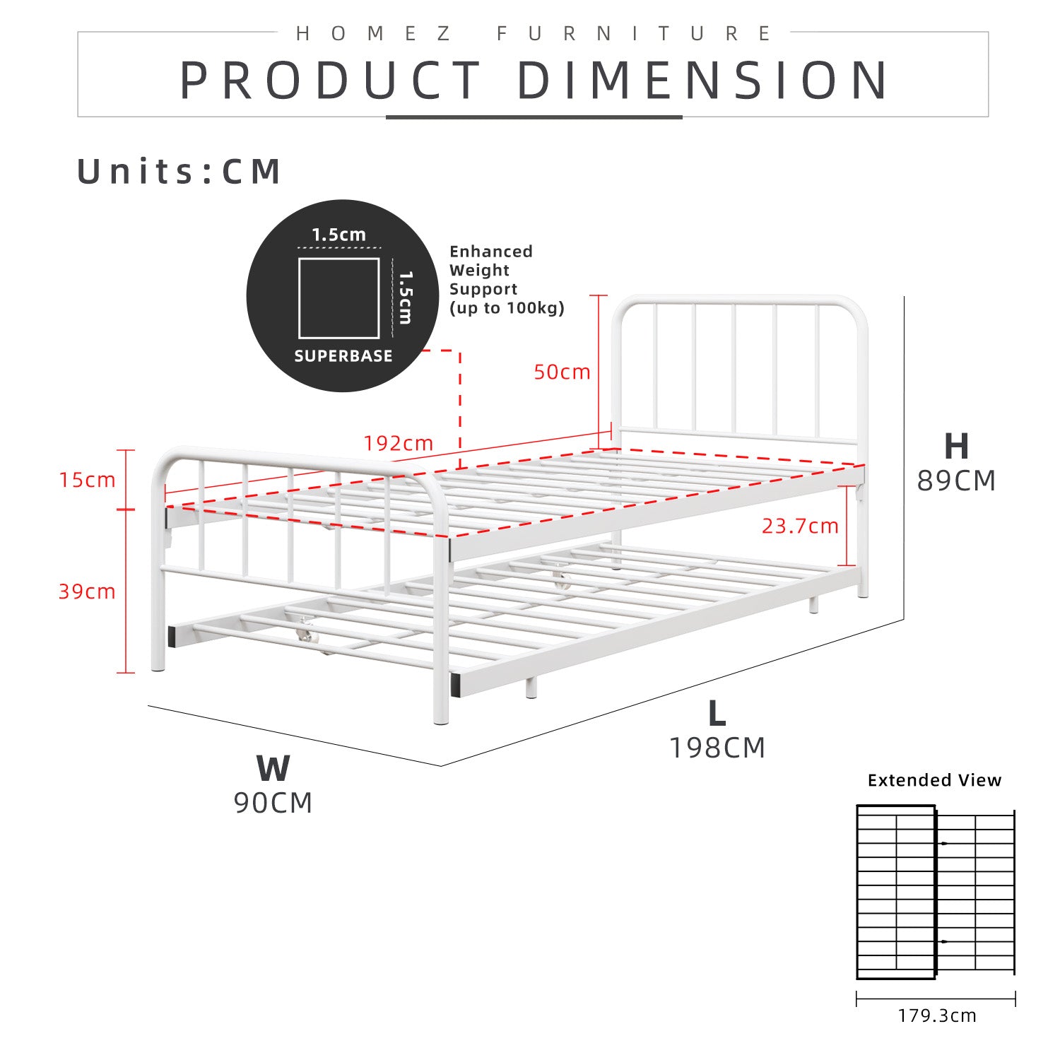- Pull-out Bed Frame Dimension : L197.5 x W90.5 x H106 cm